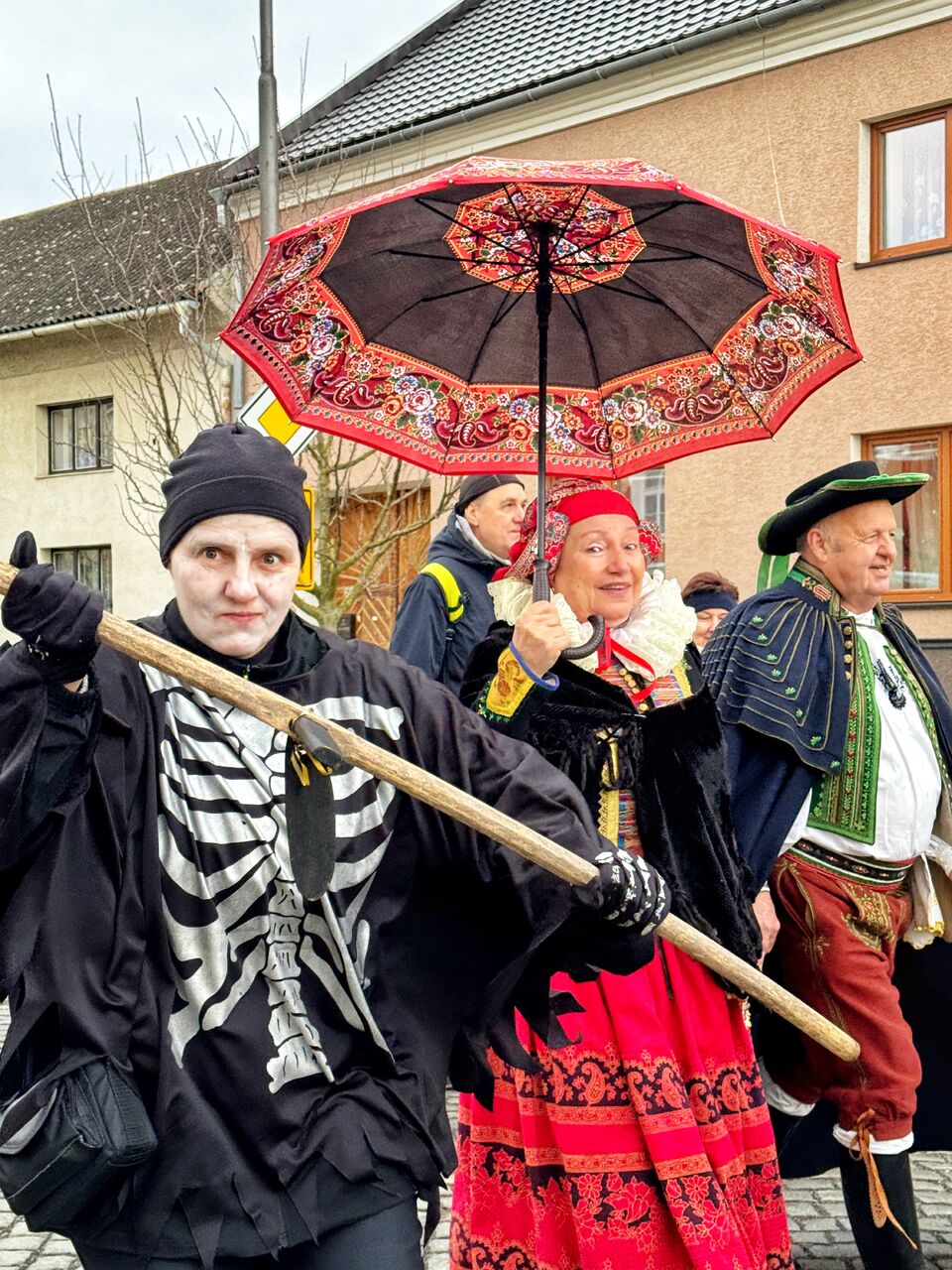Masopustní veselí s předáváním ostatkového práva, soutěží o nejlepší masku a prodej zabijačkových specialit.