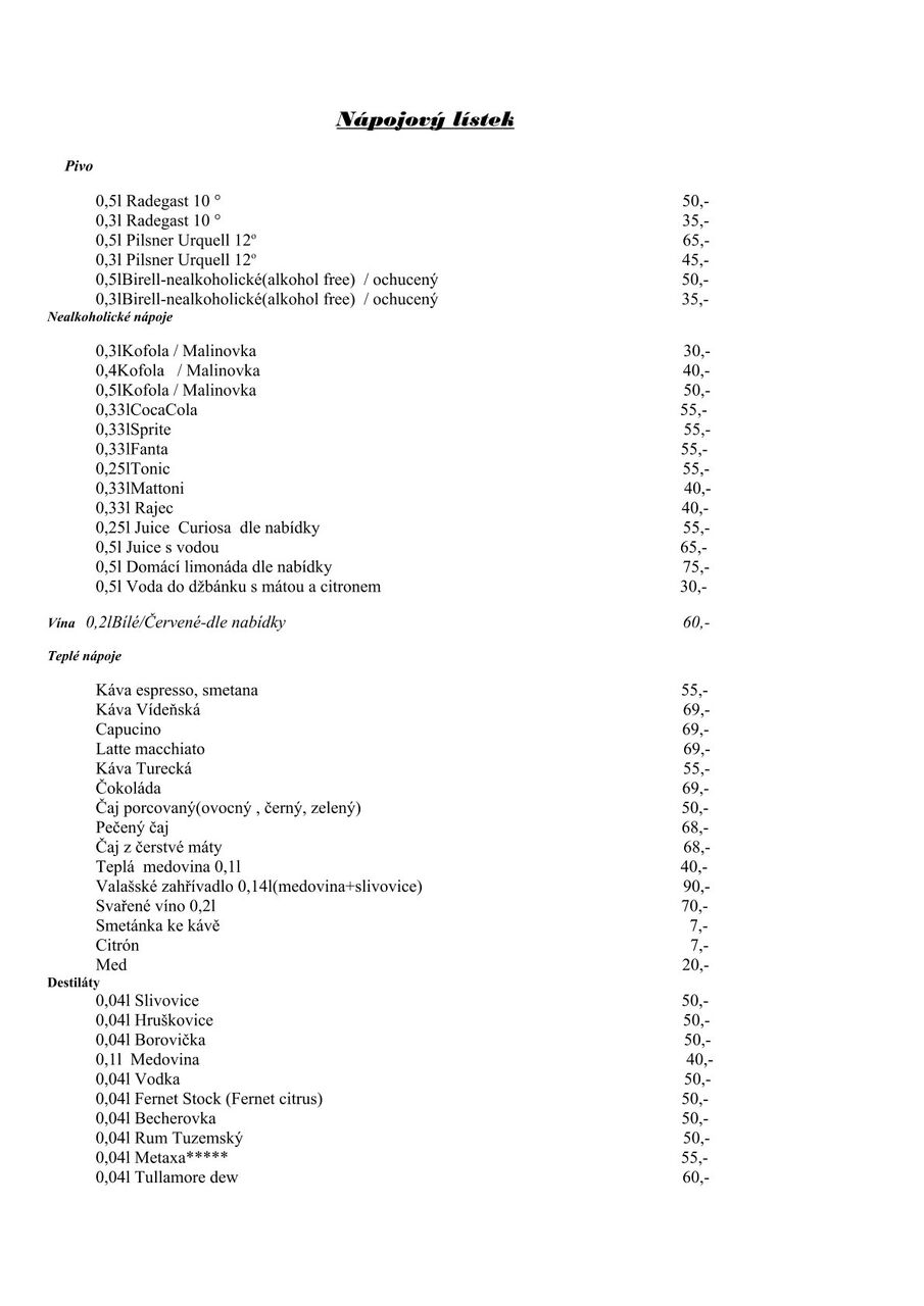 Celková kapacita restauračního zařízení je 150 osob. Možnost jednání pro menší skupiny osob v salóncích pro 20 či 70 osob.