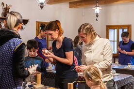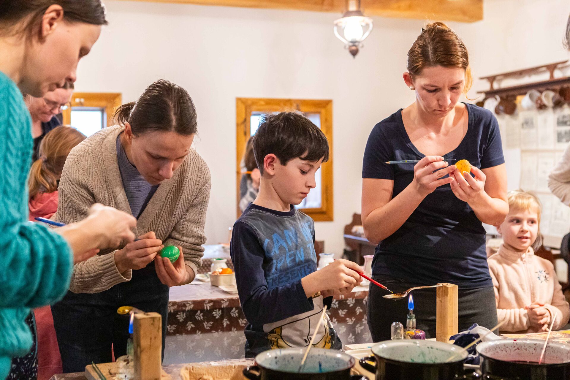 Přijďte si s námi připravit vajíčka pro šmigrustníky! Budete si moci vyzkoušet techniku batikování včelím voskem: Vajíčka se při ní nejprve horkým voskem pomalují, poté se nabarví ponorem do teplé barvy, následuje další voskový dekor a ponor do jiné barvy… Nakonec se namalovaná a nabarvená vajíčka vosku zbavují, přičemž na povrchu zůstane jen vámi vytvořený barevný dekor. Vybrat si můžete i zdobení horkými barevnými vosky, při kterém vyniknou barevné reliéfní vzory.