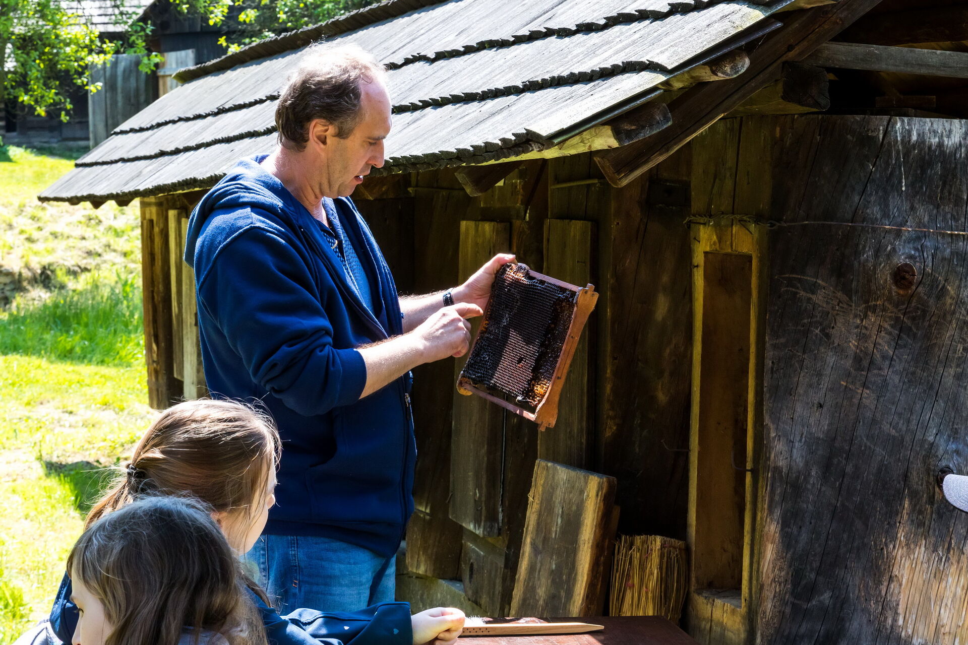 Ve Valašské dědině se projdete kolem klátových úlů vyrobených z kmenů stromů, potkáte se s včelaři a možná budete moci pozorovat i živé včely ve skleněném úlu. Ve školní expozici se zúčastníte vyučování o životě včelího společenství a prohlédnete si včely i pod mikroskopem. Závěr programu vám osladí medová ochutnávka a v praktické dílně si vyzkoušíte práci dřívějších voskařů nebo perníkářů.