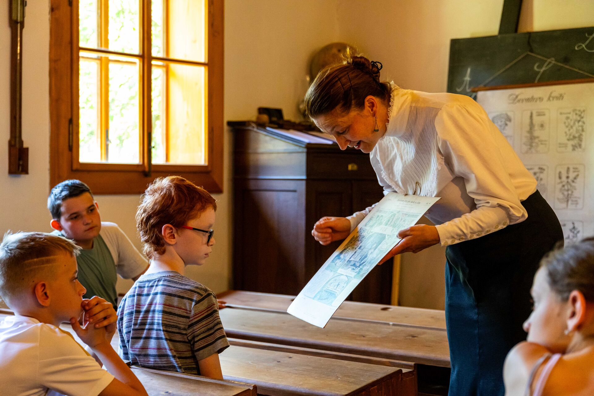 Koho by nelákalo zažít vyučování ve škole, která je více než 130 let stará. Zakusit atmosféru konce 19. století, sedět v dřevěných lavicích s dírami na kalamáře, počítat na velkém počítadle, zazpívat si u harmonia a zjistit, že pravidla chování a úcta ke kantorovi se dost proměnila. Dopřejte vašim žáčkům tohle prožít. Na viděnou se těší slečna učitelka Alena.