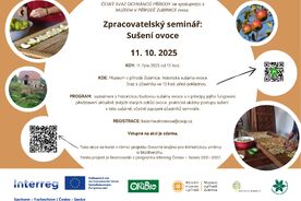 Ve spolupráci s Českým svazem ochránců přírody se v Muzeu v přírodě Zubrnice uskuteční v sobotu 11. 10. 2025 Zpracovatelský seminář: Sušení ovoce. Návštěvníci se seznámí s historickou sušárnou ovoce a ukázkami postupu sušení. Sraz účastníků ve 13:00 hod., nutná předchozí rezervace: katerina.strossova@csop.cz.