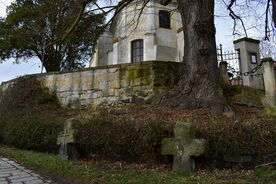 Na návsi můžete spatřit další unikátní památky – dva smírčí kříže z Hrbovic a Chabařovic. Před obvodní zdí kostela, směrem do návsi, můžete obdivovat lidový kamenný krucifix, který byl zachráněn při likvidaci staré zástavby v Krásném Březně.