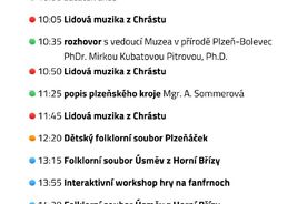 Bohatý folklorní program: Folklorní soubor Úsměv Horní Bříza, Lidová muzika z Chrástu, Dětský folklorní soubor Plzeňáček.