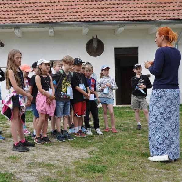 Upravená prohlídka selského obytného stavení, včetně zkrácené historie celého areálu. Zaměřeno na rodinu hospodáře, vaření a bydlení. Dětským jazykem vysvětlena témata jako je památka a památková péče a způsob, jakým mohou děti pomáhat památky chránit.