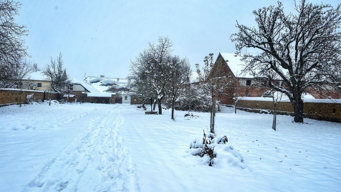 Besichtigung des Wohn- und Wirtschaftsteils aus dem Jahre 1875 sowie der angrenzenden Gärten und Scheunen mit Dachüberstand