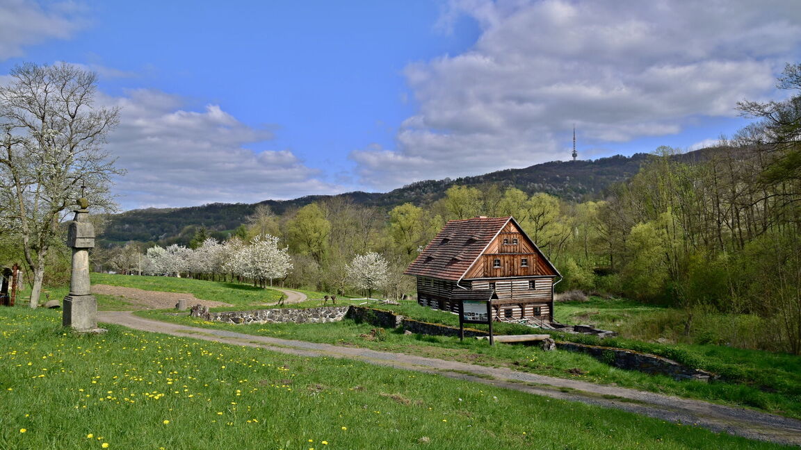 In the valley of Luční potok (Meadow Stream) you can find something unique in Central Europe – a dense network of water structures. Five water mills have survived in the area administered by the museum, though unfortunately only the torso remains of a number of them. You can take a look at the working Walschmühle, which was one of the smallest. The museum is currently renovating the largest – the Schelmühle.