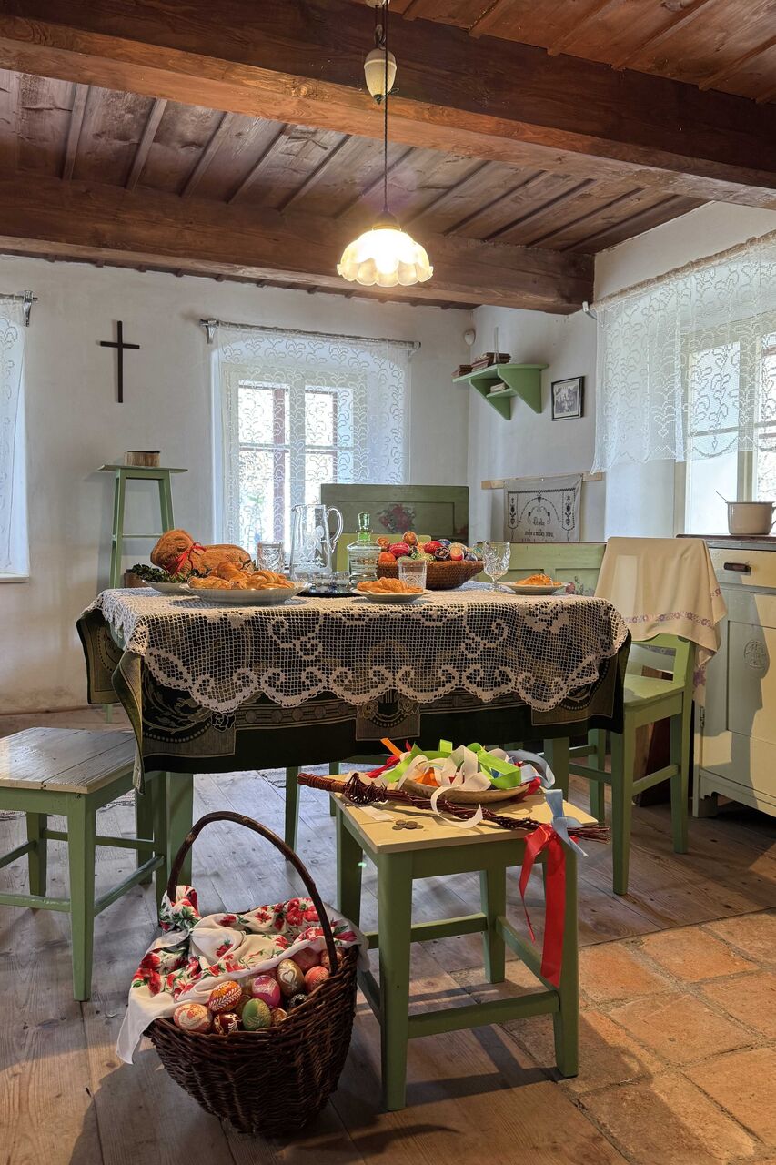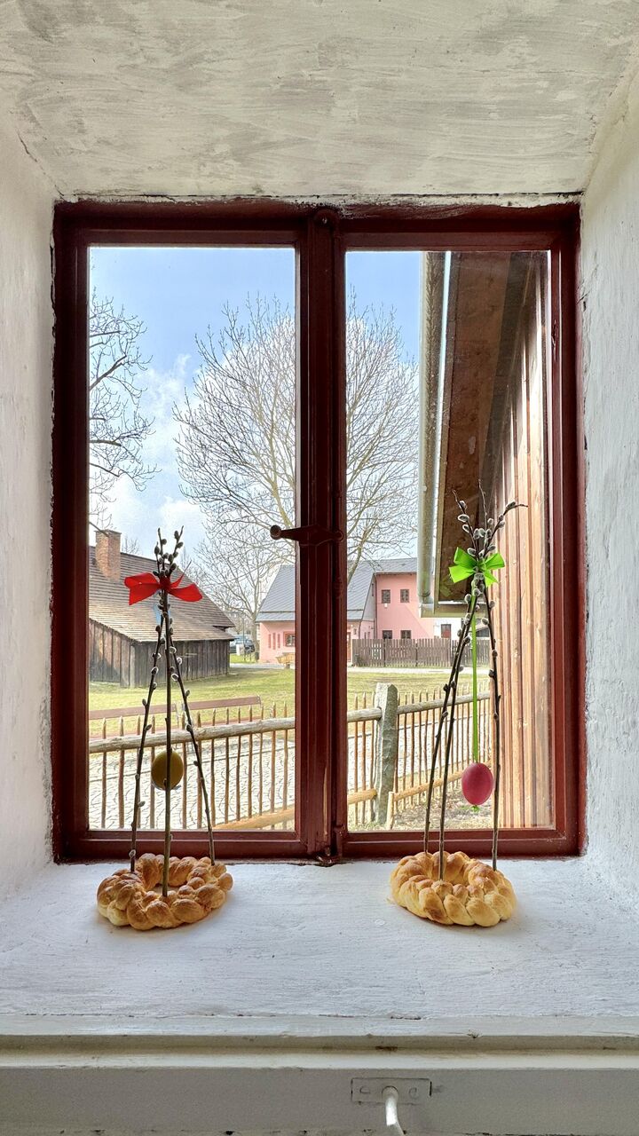 Od poloviny března do poloviny dubna budou v roubených domcích ukázky předvelikonočního úklidu nebo přípravy na první jarní tancovačku, ale neopomeneme ani ostatní dny nejvýznamnějších svátků v lidovém prostředí. Návštěvníci mohou v rámci prohlídky obdivovat velikonočně upravené expozice, které připomenou zvyky spojené s obdobím půstu až po Velikonoční pondělí. K vidění budou tradiční kraslice, pokrmy, pečivo a další zvykoslovnými předměty, které nejen potěší oko návštěvníka, ale mohou přinést i inspiraci k vlastnímu tvoření. Na Bílou sobotu (4. 4.) je pro návštěvníky připraven workshop zdobení kraslic tradičními metodami a pletení pomlázek.