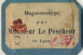 Jedná se o černobílý, ručně kolorovaný portrét neznámého muže. Formát daguerrotypie tvoří obdélník (7 x 6 cm) se zkosenými rohy, potažený červeným sametem, po okrajích cizelovaný mosazným kováním zdobeným tzv. bombírováním. Uprostřed je v sametu oválný výřez s portrétem, okraj oválu je lemovaný mosazným kováním se stylizovanými lístky. Na zadní straně najdeme informace o ateliéru – Monsieur Le Pescheur de Lyon. Podařilo se nám studijně dohledat další portréty tohoto autora či ateliéru – na první pohled jsou identifikovatelné podle charakteristickému „rámečku“ s červeným sametem a kováním. Možná na ně také narazíte při svých toulkách online světem.