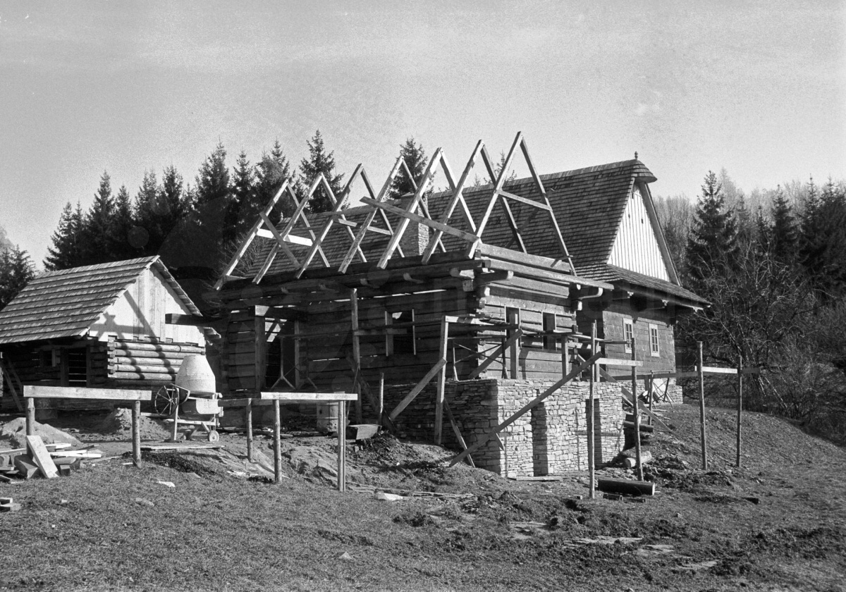 Eine Kopie des Adamec-Gehöfts Nr. 536 aus Nový Hrozenkov, mit Wohnhaus, Stall und Anbau, befindet sich in einer Reihenbebauung von Bauernhöfen auf der sogenannten Hrozenkov-Terrasse. Das Blockhaus steht auf einem hohen Sockel, der das abschüssige Gelände ausgleicht. Der Innenraum der Wohnstube zeigt das Leben eines Junggesellen in den 1950er Jahren, mit mehreren Änderungen der Anordnung und Haushaltsausstattung, die diese Zeit mit sich brachte: ein moderner Herd, ein Waschtisch mit ausziehbarer Spüle und die bereits übliche elektrische Beleuchtung. Der letzte Besitzer, Josef Adamec, war Schlosser von Beruf. Er war sehr geschickt und reparierte Nähmaschinen und Fahrräder. Sein großes Hobby waren der Obstanbau und die Bienenzucht, wovon die in der Kammer aufbewahrte Honigschleuder, die Imkereigeräte und eine Reihe von Klotzbeuten unterhalb des Hauses zeugen.