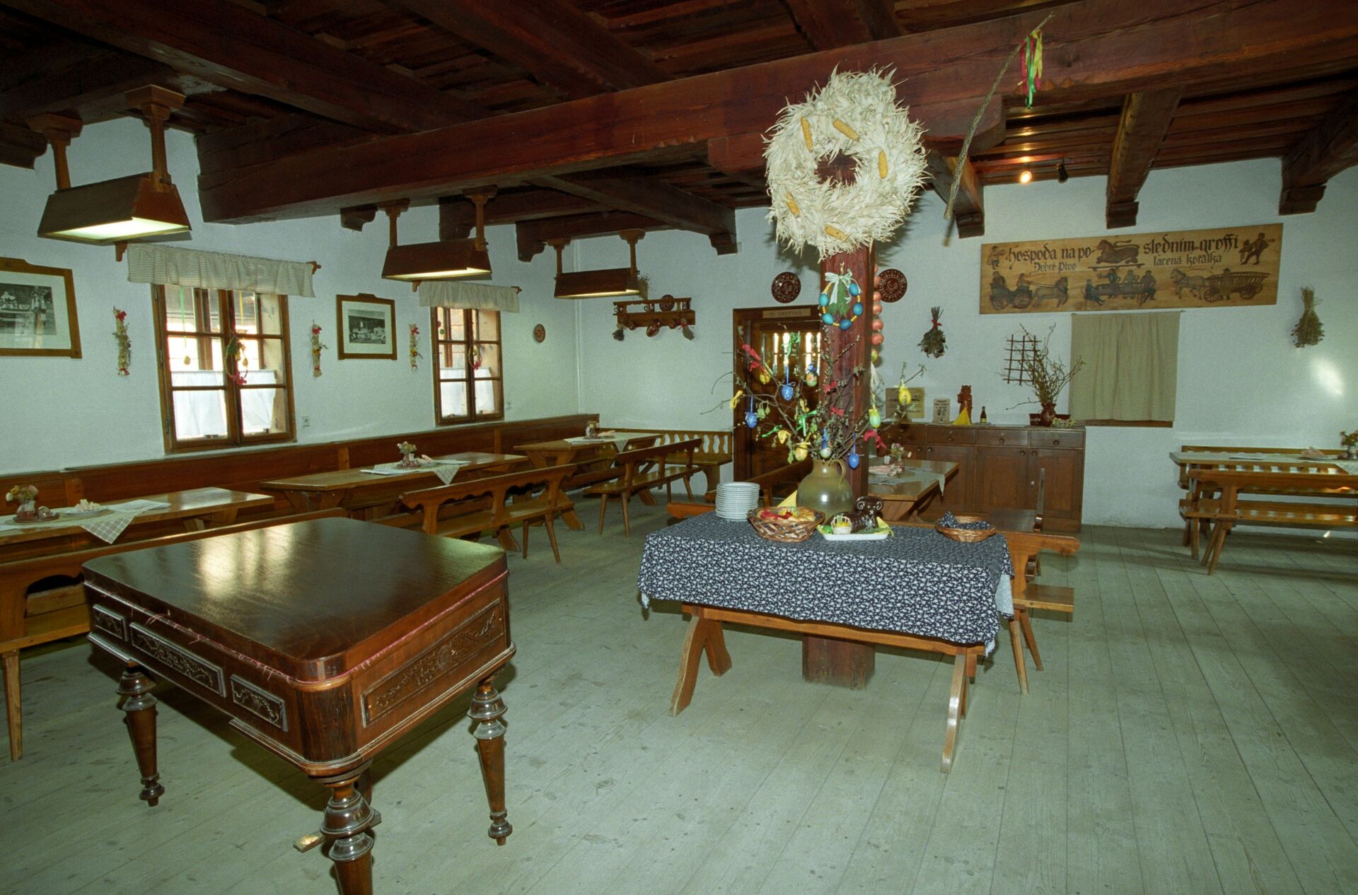 Kopie posledního roubeného domu – Žingorovy patrové chalupy s podsíňkem – který stál až do 60. let 20. století na rožnovském náměstí, byla v muzeu zpřístupněna roku 1974 pod názvem Hospoda Na Posledním groši. Přízemí i patro slouží jako stylové restaurační zařízení. V hostinské místnosti v přízemí je vyvýšené místo pro muzikanty a vyvýšený fojtovský stůl.