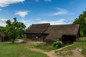Usedlost s chlévem navazujícím na obytné stavení, přístřeškem a naproti stojící stodolou je jednou z nejstarších v muzeu. Na původním místě byla postavena v poslední čtvrtině 18. století podle staré stavební tradice. Stavba byla sroubená z netesaných trámů, v obytné místnosti je hliněná podlaha a na střeše neuvidíte komín. Dymník nad ohništěm odvádí kouř do podstřeší, odkud volně prochází střechou ven. Tím je šindelová střešní krytina zároveň chráněna před napadením dřevokazným hmyzem.