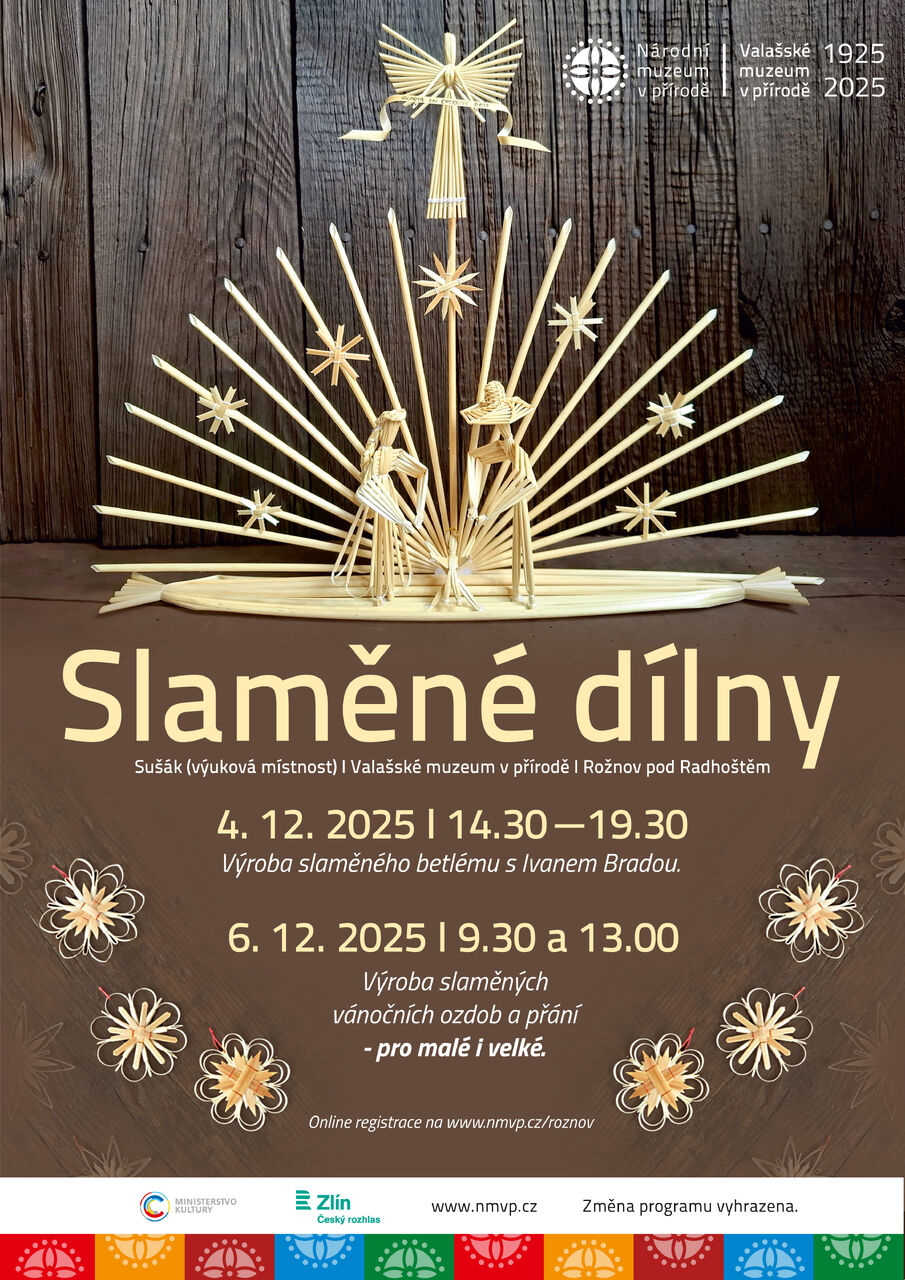 Tvořivou dílnu zaměřenou na práci se slámou povede pan Ivan Brada, pod jehož dohledem si mohou přihlášení zájemci vyrobit stylizovaný slaměný betlém.