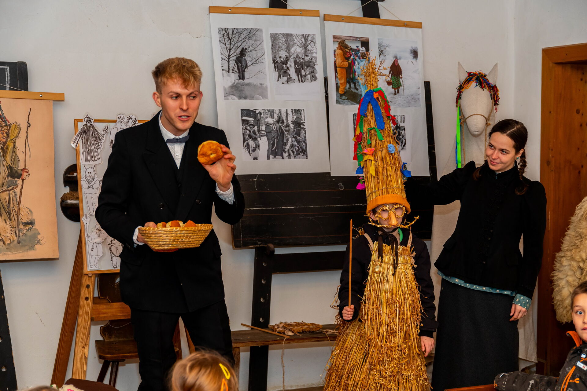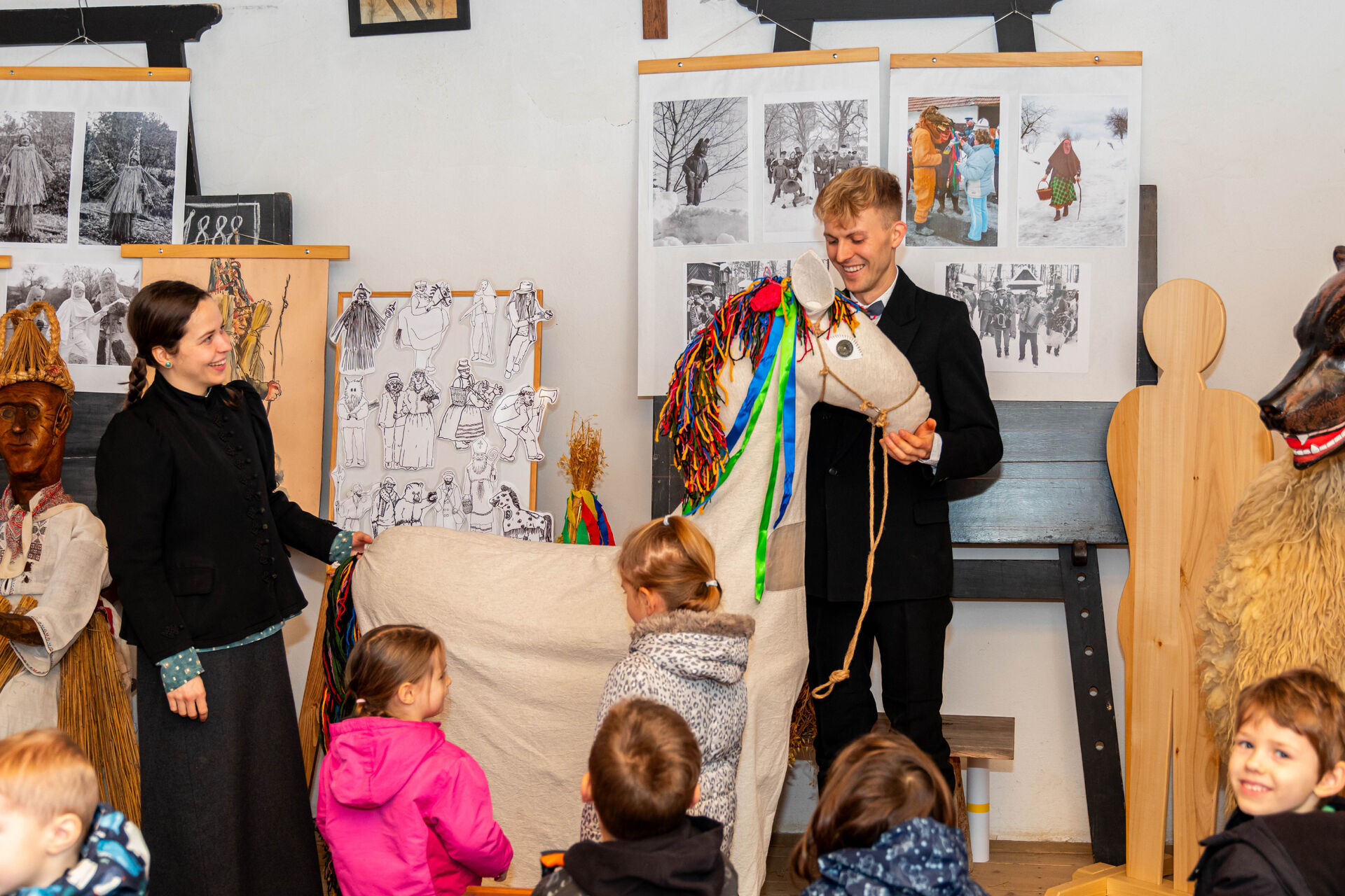 Víte, jak se dříve žilo lidem během dlouhé a často i kruté zimy? Ukážeme vám, jak si načas rozjasňovali těžké zimní období a zkusíme vás vtáhnout do masopustních radovánek. Seznámíme vás s pohřebenářem a jinými maškarami, nabídneme ochutnávku božích milostí a jiných laskomin a třeba se nakonec připojíte k masopustnímu veselí ve své vlastní vyrobené masce!