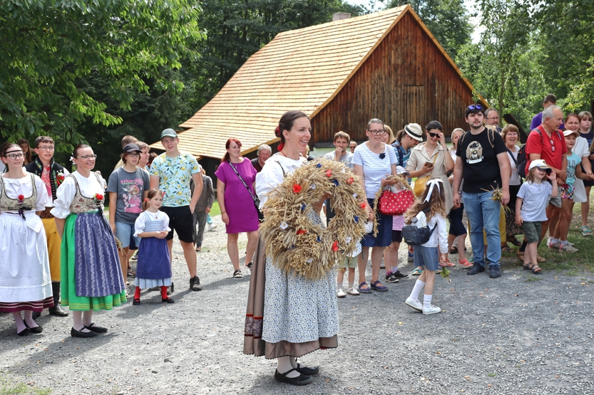 V sobotu 15. srpna se bude na Veselém Kopci od 9.00 do 17.00 hodin při programu Jak se dříve hospodařilo aneb Cesta k dožínkovému věnci pracovat, ale také slavit. Představí se nejen ukázky tradičního zpracování zemědělských plodin na vesnici, ale také dožínkové obyčeje.