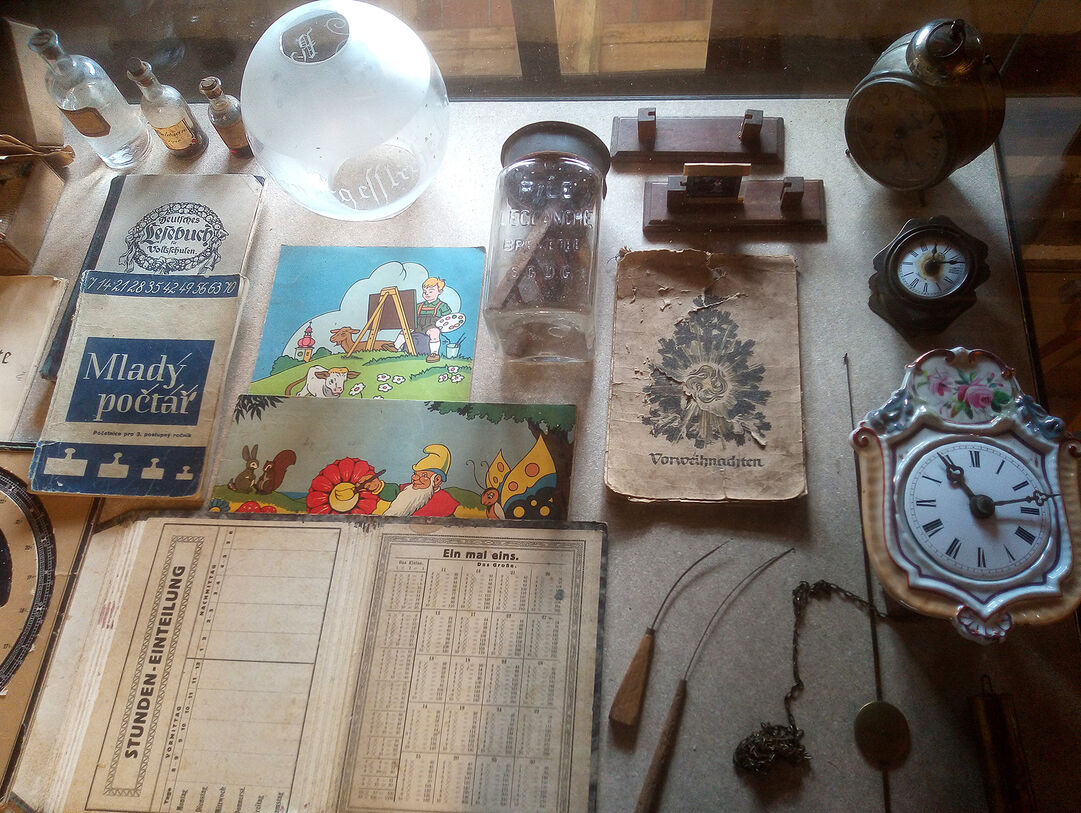 Vystavené předměty odráží průřez tematických oblastí, kterým se naše muzeum věnuje. Expozici dominuje zejména pozůstalost po neodsunuté Němce - nábytek, věci denní potřeby, zemědělské a chovatelské nástroje, osobní předměty, z dalších akvizic pak například výzdoba interiérů, hračky, školní pomůcky nebo reklamní předměty. Asi nejatraktivnějším předmětem je dvoupatrový domeček z roku 1934, který slouží jako domek pro malé králíky. Jedná se o domácí výrobu typickou pro 30. léta minulého století, tento jedinečný exemplář je dokonce elektrifikovaný. Návštěvníky zaujme i kazeta – kufřík s ozdravnou elektrizující sadou tzv. ozonizér, známý například z filmu Postřižiny. Několik předmětů dokumentuje i historii Zubrnic a muzea samotného.