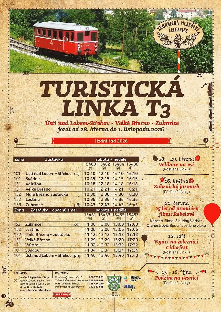 Při cestě k nám, do Muzea v přírodě Zubrnice, využijte turistickou linku T3 (Ústí nad Lab. - Velké Březno - Zubrnice).