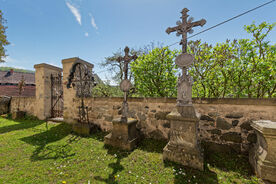 Na návsi můžete spatřit další unikátní památky – dva smírčí kříže z Hrbovic a Chabařovic. Před obvodní zdí kostela, směrem do návsi, můžete obdivovat lidový kamenný krucifix, který byl zachráněn při likvidaci staré zástavby v Krásném Březně.